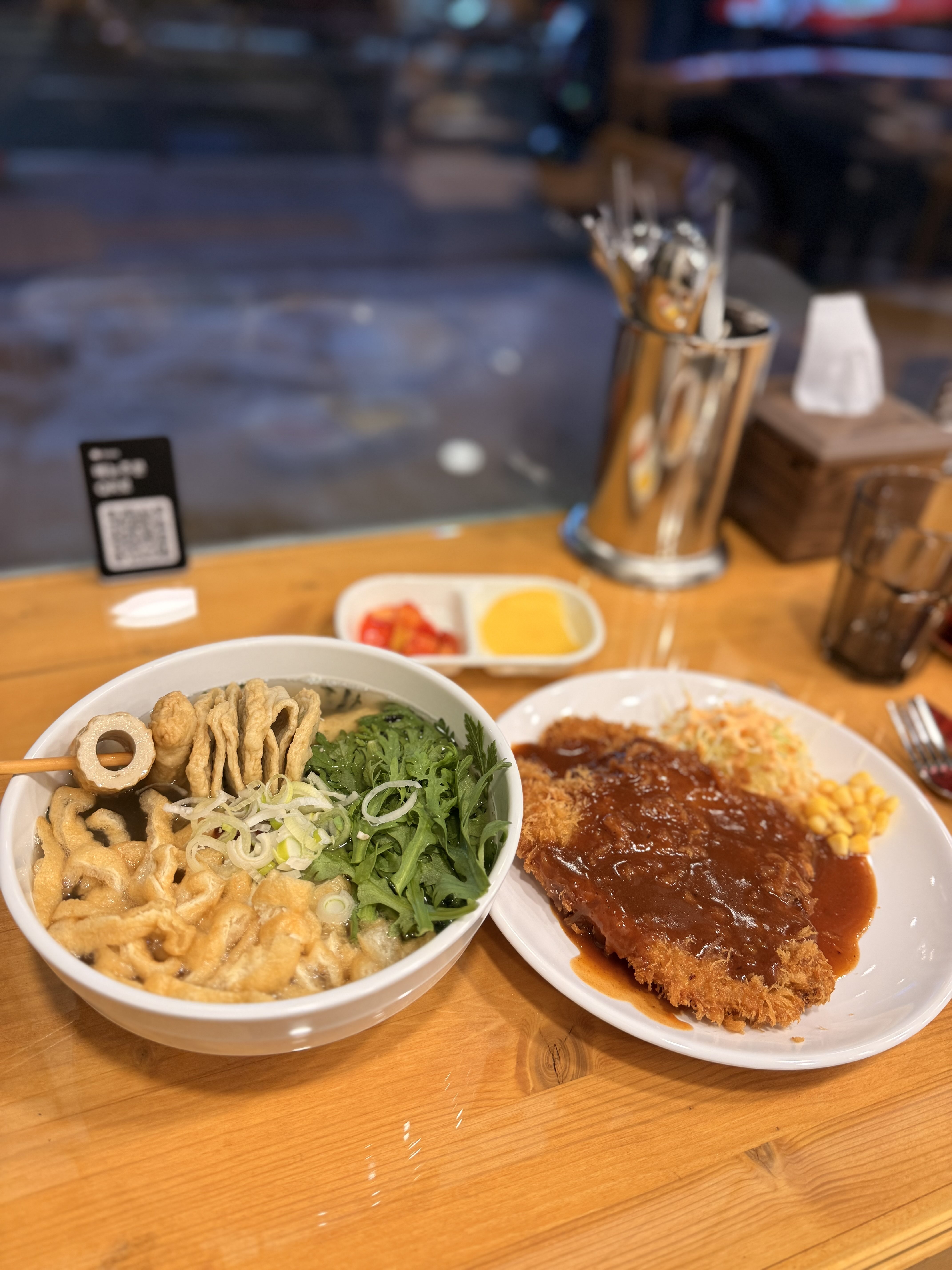 일본 우동보다 얇은 면에 유부와 쑥갓이 잔뜩 들어가는 한국식 우동에 돈까스, 제육덮밥이라는 기사식당 스타일의 메뉴를 운영하는 이 우동가게는 사실 작년 10월 말 같이 사는 친구가 오픈한 곳이다. 나와 대략 25년지기인 이 친구는 본인의 커리어 중 가장 많은 시간을 항공 승무원으로 보냈다. 이후 대학로에서 와인바를 운영했고, 호텔/리조트를 거쳐 소위 힙한 것 잘 만들어내는 F&B 회사들에서 음식점을 기획하고 운영하는 일을 해왔다. SNS를 전혀 하지 않고 남들이 하는 일, 유행에도 크게 관심이 없는 친구는 매일 달라지는 트렌드에 일년에도 컨셉을 몇번이나 바꿔야 하는 업계에서 그래도 주변의 인정을 받으며 꾸역꾸역 일해왔지만 아무래도 적성에 맞지는 않았던 것 같다. 더 어릴적 멋모르고 해봤던 와인바 창업 이후로 다시는 자영업을 하지 않는다 선언했었는데 언제부턴가 한번씩 본인의 가게 얘기를 꺼내게 됐다. 화려한 마케팅으로 반짝 사람들의 눈을 빼앗지만 정작 지속될만한 컨텐츠가 없는 곳 보다는 맛있는 한끼를, 부담없는 가격에, 꾸준히 먹을 수 있는 곳을 만들고 싶다고 했다.